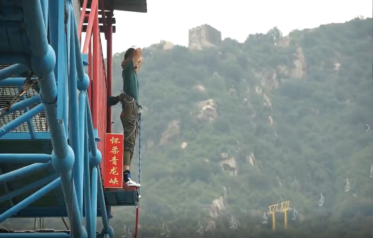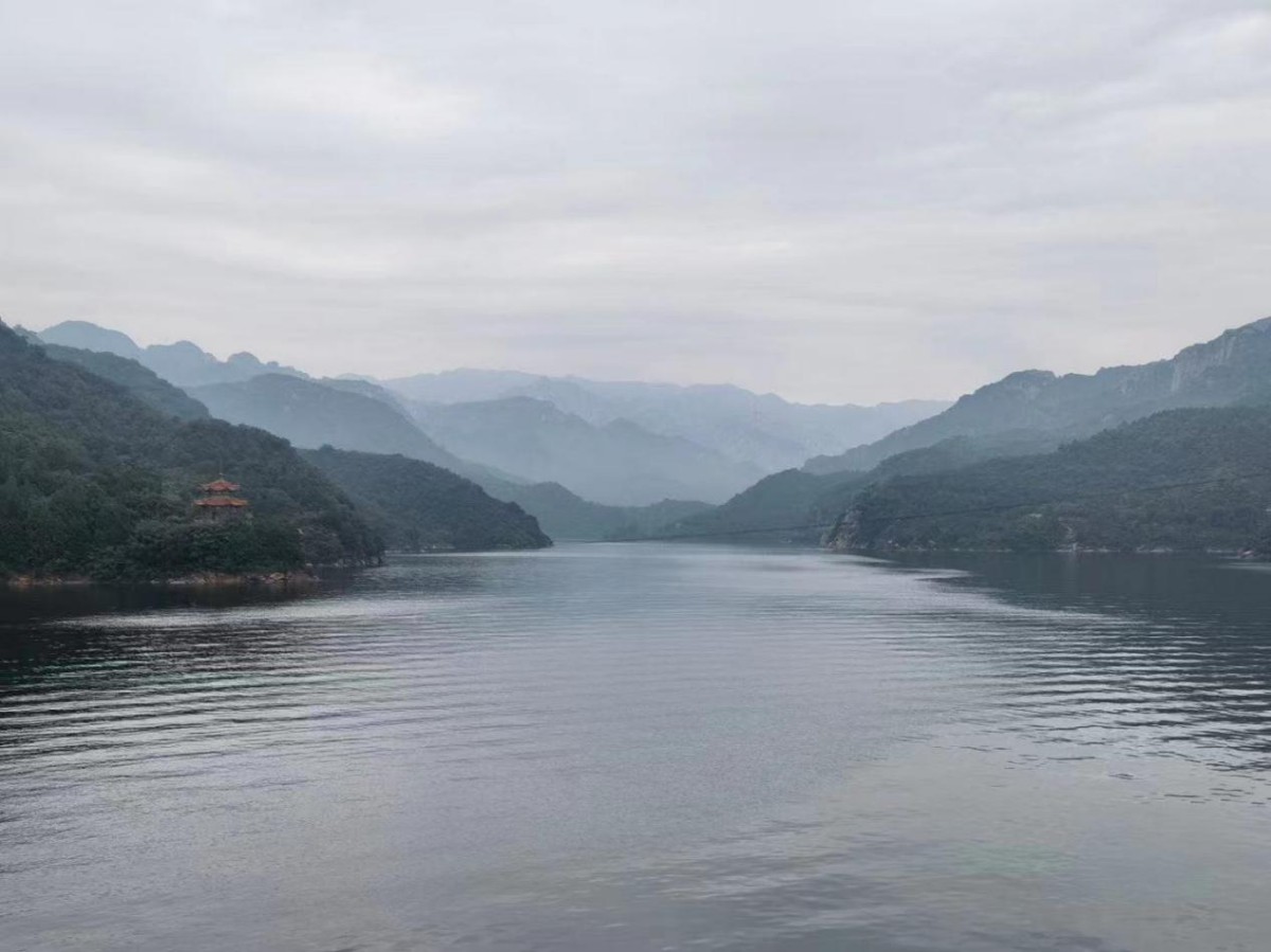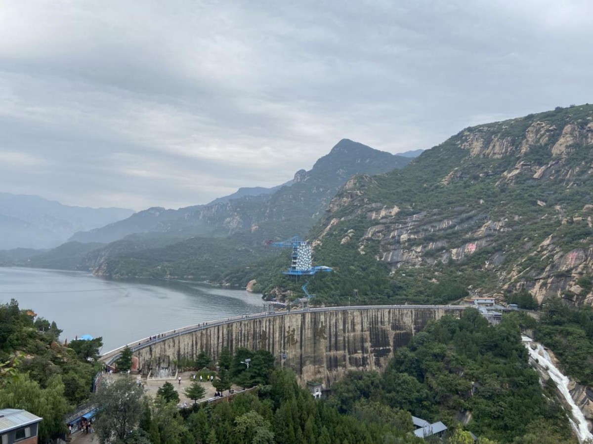 空山新雨后,天气晚来秋。一场秋雨让山里的空气更加清新、湿润,让人心旷神怡。次日清晨我们整装待发,前往青龙峡水库。雨后的山里雾气蒙蒙,水波不兴,宛如一幅画卷,令人神往。领略风景美如画的同时,也惊叹于大自然的鬼斧神工,山上怪石嶙峋,山中瀑布飞泻而下,水花四射,涛声悦耳。大家有的结伴而行,漫步在水库大坝之上欣赏风景。有的则踩着陡峭的台阶,向山的最高处攀登而去,年轻人更喜欢蹦极、空中索道这种刺激的娱乐项目。